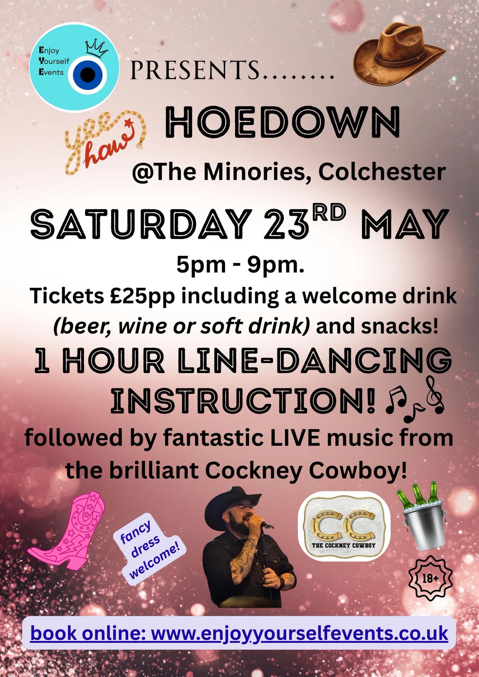 A fun and lively Hoedown with live music from the wonderful Cockney Cowboy and an hour of line-dancing instruction. Set in the beautiful and spacious gardens at the wonderful The Minories in Colchester High Street, expect dancing, music and lots of laughs!